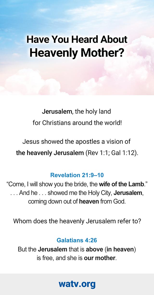 Card News Have You Heard About Heavenly Mother? 15,337 views 카카오톡 공유하기 Press the image long enough and save it. Right click the mouse on the image and save it. 카카오톡 공유하기 Back Related posts Starlight: The Universe’s Signal In the movie Interstellar, the protagonist embarks on a space mission for the future of… Ransom As he expected, Jesus Himself came down to the earth in the flesh to save… Destiny “The events that will necessarily happen to a particular person or thing in the future,…