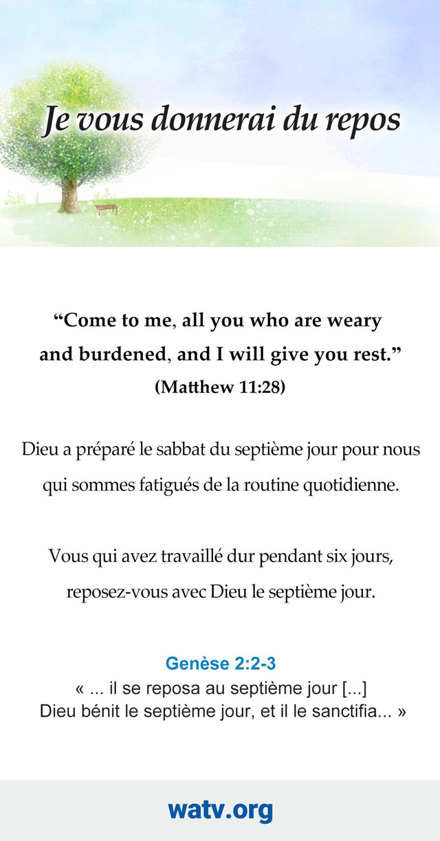 Carte message Je vous donnerai du repos Vue 60,412 Août 18, 2021 카카오톡 공유하기 Appuyez longuement sur l’image pour l’enregistrer. Cliquez droit pour sauvegarder l’image. 카카오톡 공유하기 Retour Publications associées L’amour de Dieu Dieu nous a appris à « être toujours joyeux » et à « rendre grâce… La famille céleste et l’amour Parmi tant de sagesse et de connaissance qui sont nécessaires pour notre vie, les enseignements… Les membres de la famille céleste qui s’aiment les uns les autres La famille est liée par le sang, dont les membres sont liés les uns aux…