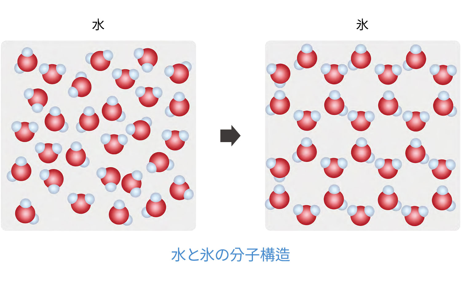 雪の結晶の形が少しずつ異なりながらも六角形の対称構造を成すのは、雪の材料である水分子の形のためである。ほとんどの分子は直線か四面体の形をしている。しかし、水素二個と酸素一個が結合した水分子は、特異にも、一直線に広がった形ではなく、104.5度の角度でやや曲がった形をしている。冷たい温度で凍りつく時、曲がった水分子6個がカンガンスルレ(韓国の民族円舞)のように両手を互いに合わせて六角形の形を帯びるのである。