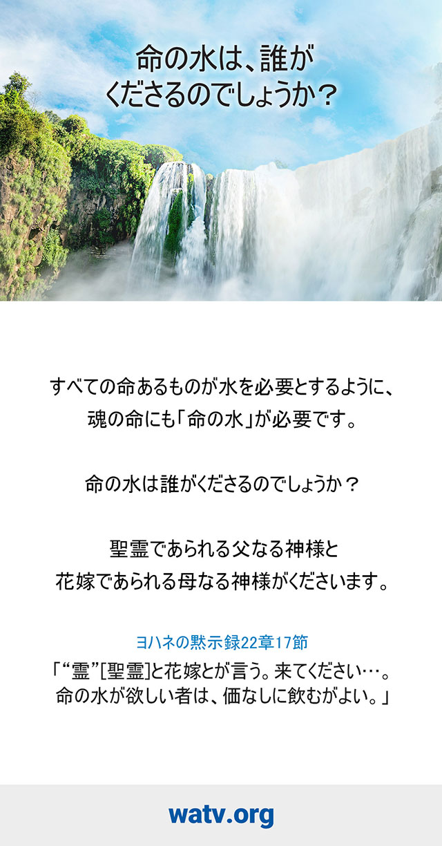 カード ニュース 命の水は、誰がくださるのでしょうか? 6,644 回視聴 카카오톡 공유하기 画像を長押しして保存します。 マウスの右ボタンをクリックして画像を保存します。 카카오톡 공유하기 戻る 関連文 献げ物が有り余るほどだ 神様から二回目の十戒を受けて、… 受けた力で 「高く飛ぶ鳥が遠くを見る」とい… 母から授かった生命の遺産、ミトコンドリア 私たちの生命に不可欠な要素であ…