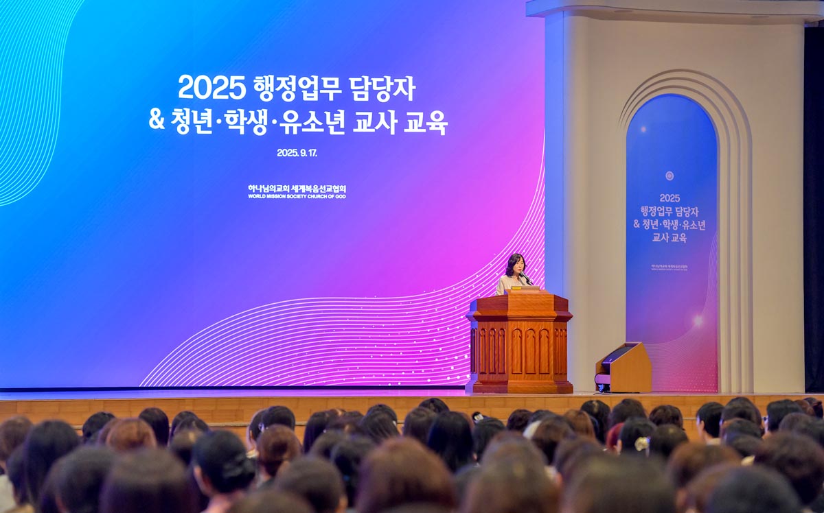 9월 17일, ‘2025 행정 업무 담당자 & 청년·학생·유소년 교사 교육’이 옥천고앤컴연수원에서 열렸다. 전국의 물품·비품·회계·서무 담당자와 연령별 교사, 목회자 등 7500여 명이 참석해 담당자로서 사명감을 고취하고 역량을 길렀다.
