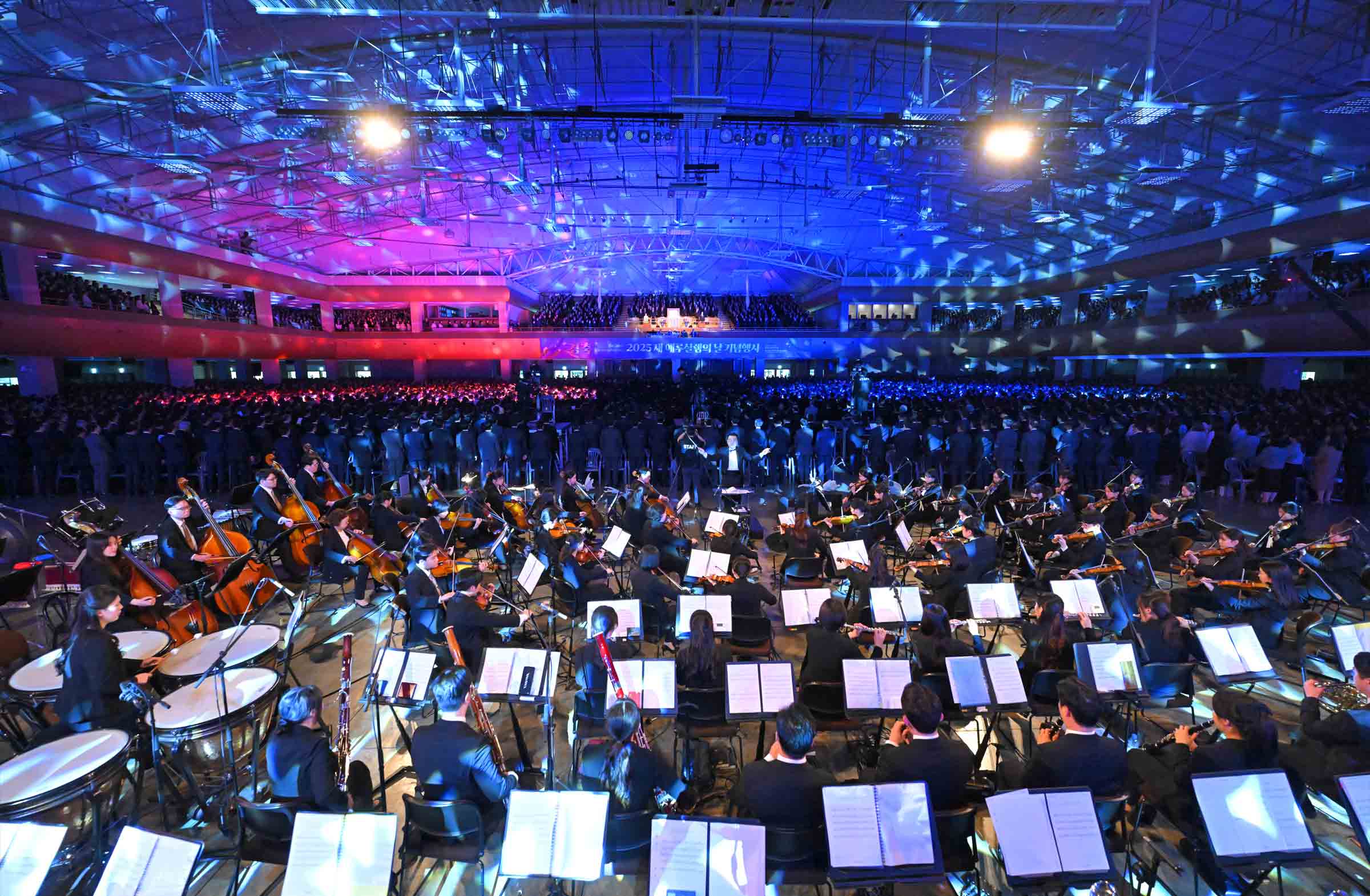 행사는 참석자 전체가 함께하는 새노래 합창 및 플래시 퍼포먼스로 마무리됐다. 성도들의 정성과 노력에 박수를 보내신 어머니께서는 “긴 세월 아버지께서 희생하시고 여러분이 영혼 구원에 힘써서 이렇게 세계 전역에 복음이 전해졌다”며 거듭 고마움을 표하시고 “서로 사랑으로 격려하고 위로하며 천국 상급을 향해 달려가자”고 격려하셨다.