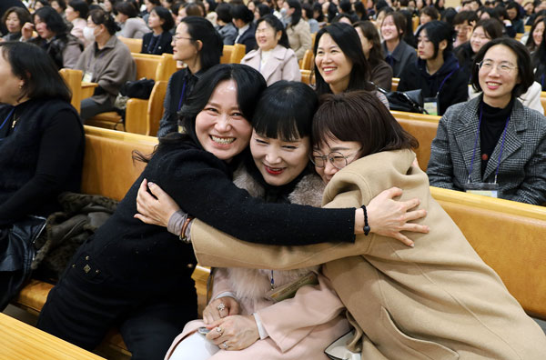 발표가 마친 뒤에는 참석자들이 ‘어머니 사랑의 언어를 일상에서 꾸준히 실천하겠다’는 평화선언문을 한목소리로 낭독했다. 캠페인 주제곡 ‘평화를 부르는 어머니 사랑의 언어’ 중창 무대 때에는 모두 함께 휴대폰 플래시를 흔들고 노래를 따라 부르며 가사의 의미를 곱씹었다.