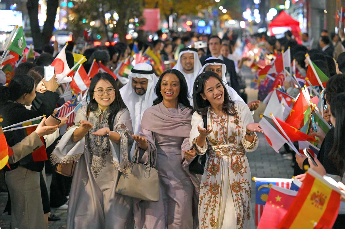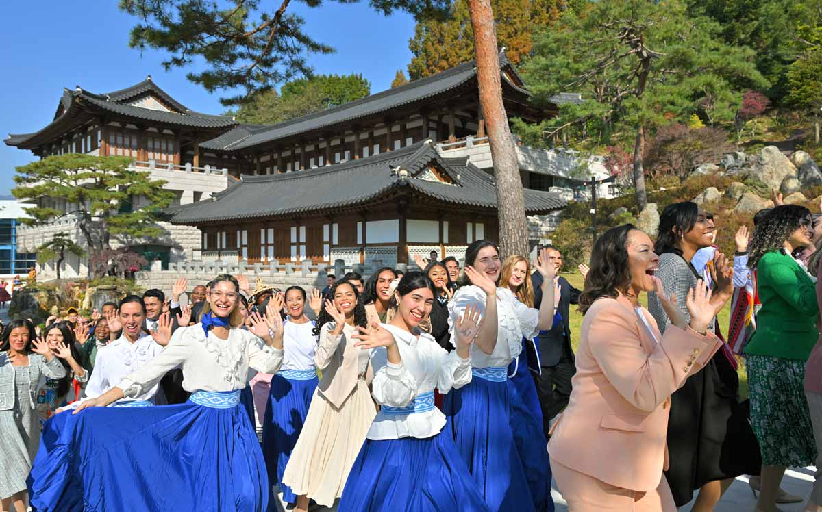 蔚蓝的天空与五彩斑斓的草木交相辉映,在令人赞叹的深秋时节,第83次海外圣徒访问团踏上了韩国的土地。本次访问团跨越各大洲,由来自美国、哥伦比亚、委内瑞拉、巴西、印度、澳大利亚、南非、西班牙、葡萄牙等21个国家的180余名圣徒组成。11月3日,在“新耶路撒冷日纪念活动”举行前约十天,参与活动演出的圣徒们陆续入境;一周后,其余圣徒也相继抵达。他们在韩国停留最长达两周(至17日),在母亲的爱中度过了意义深远的时光。整个行程提供英语、日语、印地语、德语等8种语言的同声传译。